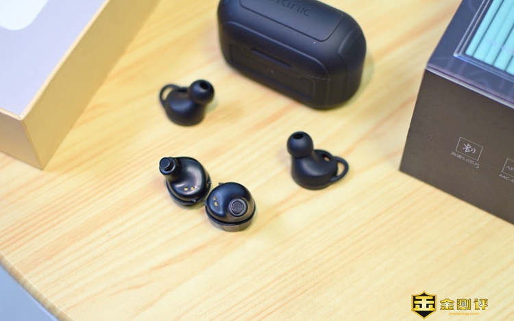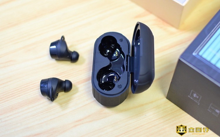 耳机为IP55的防水等级,外层配有专门的耳塞套。耳机体积方面不大不小,没有过于追求小巧精致,而是在尽可能保证小巧的同时,内部设计了动圈+动铁双单元组合,另外还各有70mAh的大电池,以保障超长的续航能力