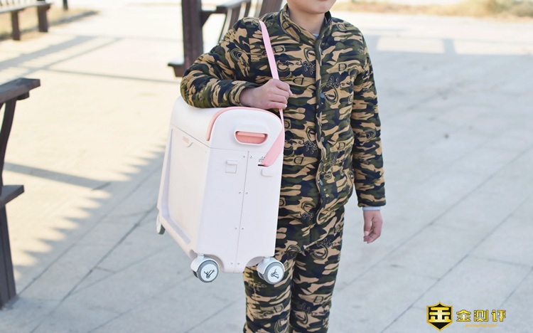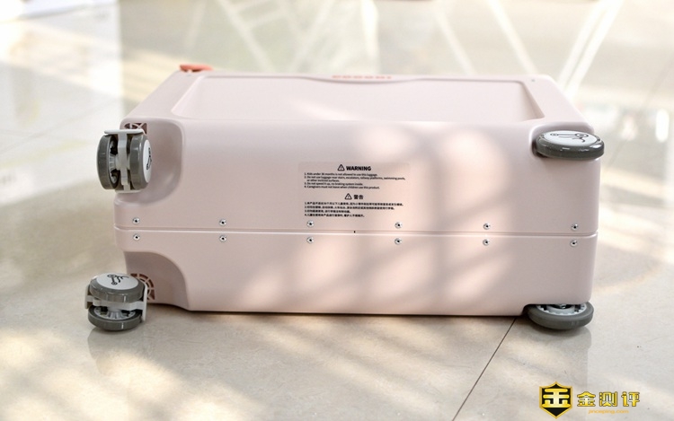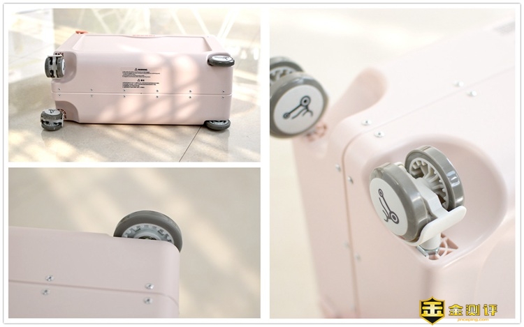 静音灵活的轮子,加上箱子整体扎实的设计,孩子骑着它玩的很嗨