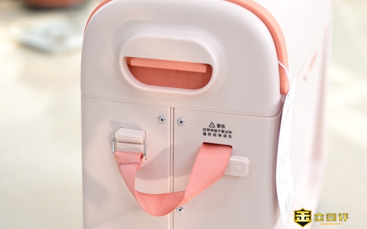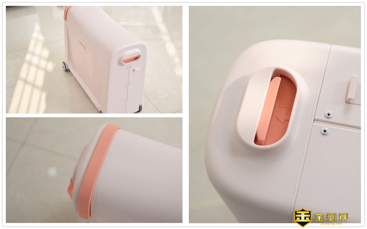 作为一款儿童用品,整只箱子的边角和细节设计都很细心,四周采用了加大的圆弧R角设计,防止刮到孩子