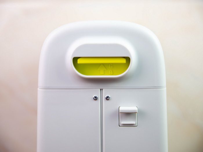 将酷骑儿童行李箱的顶部取下后,可以看到这里还设计了一个小收纳槽,并且是透明盖板,可以用来放置一些物品,空间利用率还是比较高的。