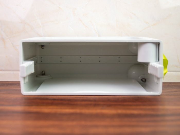 在箱体的左右两侧,可以看到有面板内凹形成的边缘,这个刚好可以用来放脚,这样在溜娃的时候就会更轻松了。