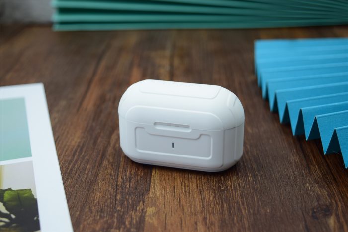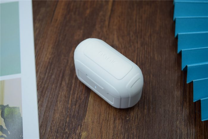 南卡T2配备了专用充电仓,集收纳和充电功能于一身,耳机出厂默认放置在了充电盒中,其中充电盒采用了塑料材质,表面经过了凹凸处理,让整体看起来更具立体感,而且表面还经过了亲肤防滑处理,触感细腻舒适。