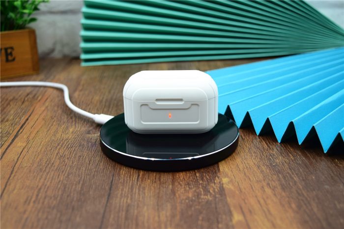 南卡T2除了支持有线充电外,充电仓还支持无线充电,放到无线充电器上即可自动进行充电,不过要注意只支持电流充电的无线充电器,充电速度要比有线慢。