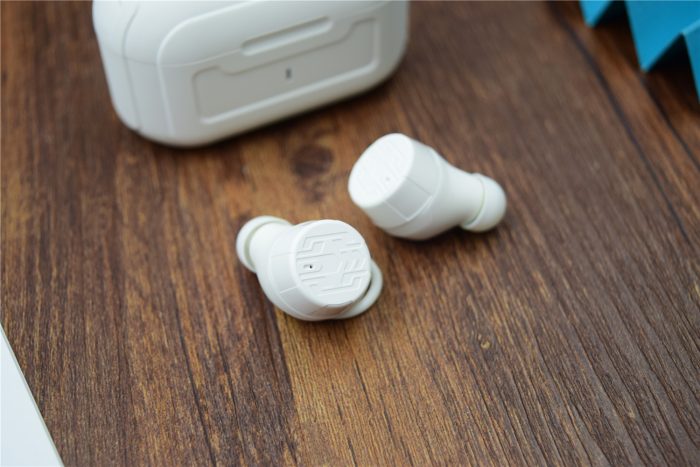 南卡T2外观简约硬朗,耳机外壳采用了磨砂设计,触感细腻舒适,其中正面还加入了不规则的纹路设计,和充电仓保持一致。