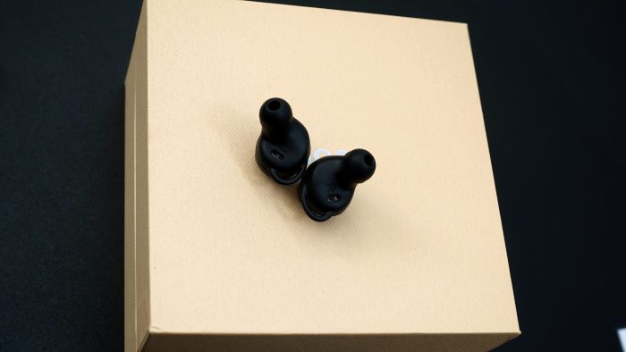 耳机的充电触点被设计在了耳机内侧。
