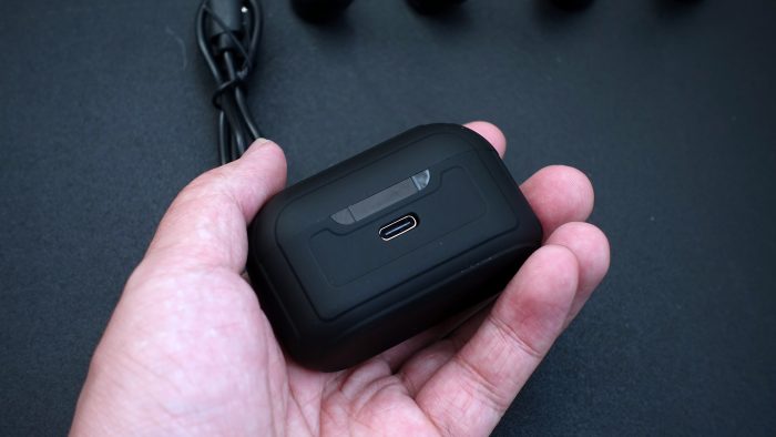 在充电仓的背面是有一个Type-C充电接口。