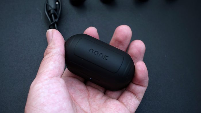 充电仓顶部为南卡的LOGO设计——NANIC。