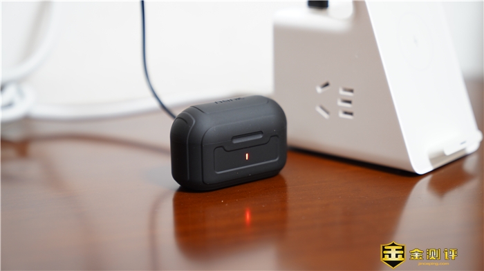 充电仓的正面采用了一个梯形的视觉设计,凹凸有致的纹理使得这款充电仓更加有立体感和科技感。