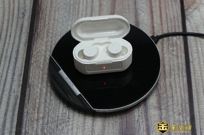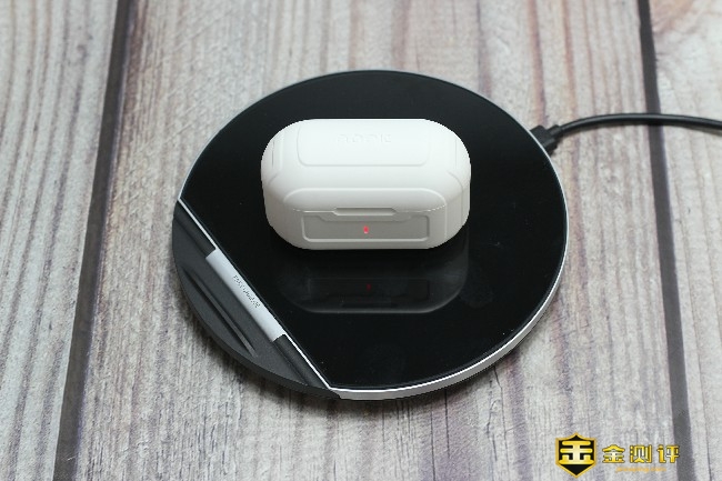 充电仓正面是电源指示灯用于表示耳机的充电状态,充电仓为耳机充电的时候电源指示灯会亮起,充电仓内置400mAh电池。