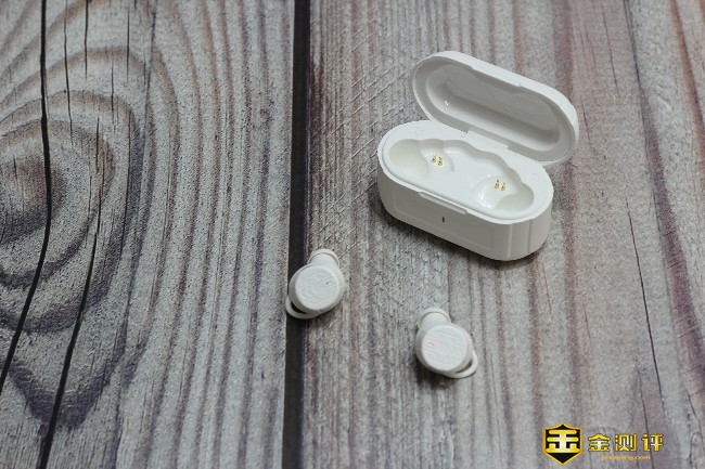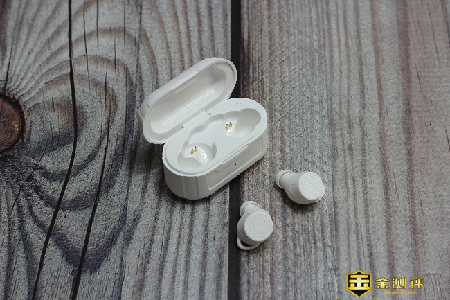 充电仓采用了翻盖式的打开方式,内部有金属触点触电,而且磁吸力很强耳机放进去后非常牢固,同样充电仓印有“R”和“L”字样来区分左右,更加方便放置真无线耳机。