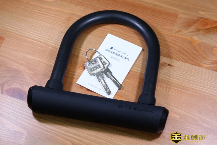 这就是易锁宝蓝牙U型锁全家福,一套U型锁,备用钥匙两把,还有一份说明书,第一眼看和我们常用的U型锁并没有什么两样,我们接着看。整体看来,这款蓝牙U型锁的颜值还是挺不错的,黑色比较耐脏,符合锁具的日常使用场景。易锁宝的蓝牙U型锁有长款和短款两个版本,我选择的是短款,比较适合在锁电瓶车这种场景,长度208mm、宽度201mm,锁梁采用的是直径为16mm的军工合金钢材质,牢固耐磨;据官方数据表示,可以抗20吨液压剪,所以几乎不用担心被暴力破坏的可能性。