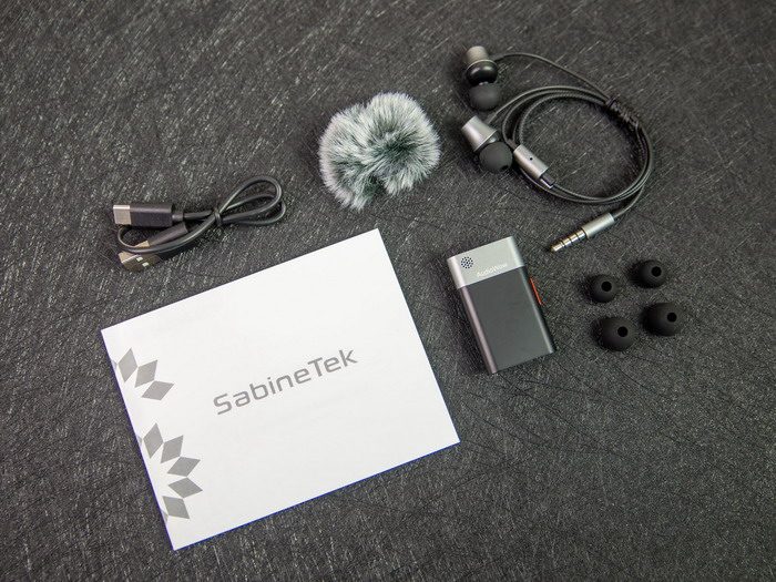 塞宾AudioWow的包装盒内含有:塞宾AudioWow本体,具有麦克风的耳机以及2对不同大小的耳塞帽,防风罩,Type-C 数据线以及使用说明书。