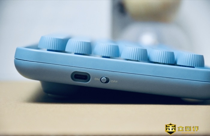 雷柏ralemo Pre 5多模无线机械键盘侧面设计有一个电源开关,和一个Type-C充电口。