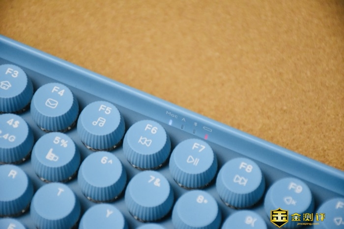 雷柏ralemo Pre 5多模无线机械键盘中间设计有四颗指示灯,从左到右依次为:Mac指示灯、大小写指示灯、蓝牙指示灯、电量指示灯。可根据指示灯的不同颜色了解实时状态,具体的颜色含义可查看说明书。