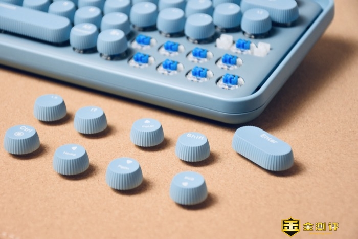 雷柏ralemo Pre 5多模无线机械键盘采用雷柏自主办公机械轴:青轴,6000万次单轴使用寿命,实时快速响应,手感持久,带来可靠稳定的操控体验。青轴适合文字工作着,按键给我带来的感觉非常爽快清脆、节奏感强烈。多年前玩过的红轴和黑轴,长时间体验下来这俩确实不是我的菜,作为一个资深码农,我还是非常偏爱青轴的。按键基座上有个十字固定位,键帽上有十字凹槽,两者进行扣压,整体安装完毕。操作体验下来非常方便快捷。