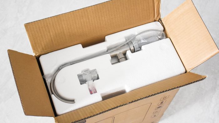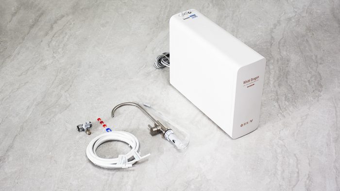 包装内容还是非常丰富的,包含云米小白龙净水器主机、纯水龙头、三条PE管、三通阀、四个卡销以及使用指南,两支滤芯在出厂的时候已经安装到机身上了。