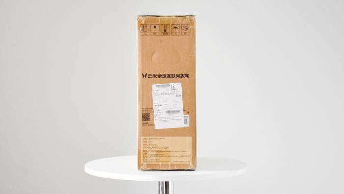在某种意义上净水器也算作是大件家电产品了,也可以称之为新家电。云米小白龙净水器采用的是传统的瓦楞纸包装箱,箱子正反两侧印有产品名称型号以及线条轮廓图,右侧纵向罗列有五项功能特性。