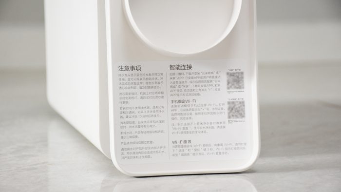 互联网品牌的产品在颜值方面通常都不输传统品牌,在云米小白龙净水器上也再次印证了我的看法。机身整体是一个规整的长方体,立式的造型有些类似于ITX体积的电脑机箱,边角处加入了圆弧形线条过度,削弱了传统家电产品给人留下的“笨重”印象。