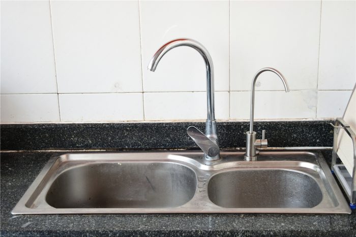 在进行净水器安装之前,先来看下我以前使用的台上式净水器,可以看到净水器的体积基本上和水槽差不多,而且水槽左侧的区域基本上都被净水器占据,对于原本就比较有限的厨房空间来说,还是比较占地方的。