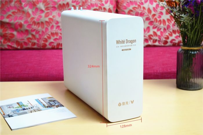 云米·泉先小白龙给我的第一感觉就是小巧精致,产品尺寸为416mm*128mm*324mm,这个宽度和高度相信即使是小户型的厨房也能轻松放入,即使直接摆在水槽边上也丝毫不会碍事,可以节约更多的厨房空间。