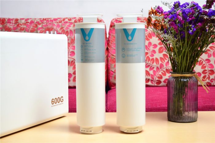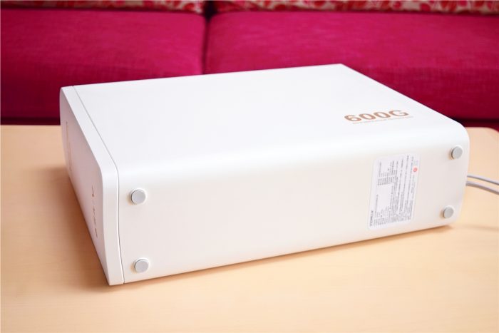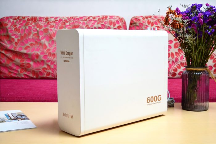 在整个机身上看不到任何按键,其中右侧机身印有金色的“600G”字样,云米·泉先小白龙采用600G大通量无罐设计,每分钟出水可达1.5L,能够很大程度上满足用户的日常用水需求。