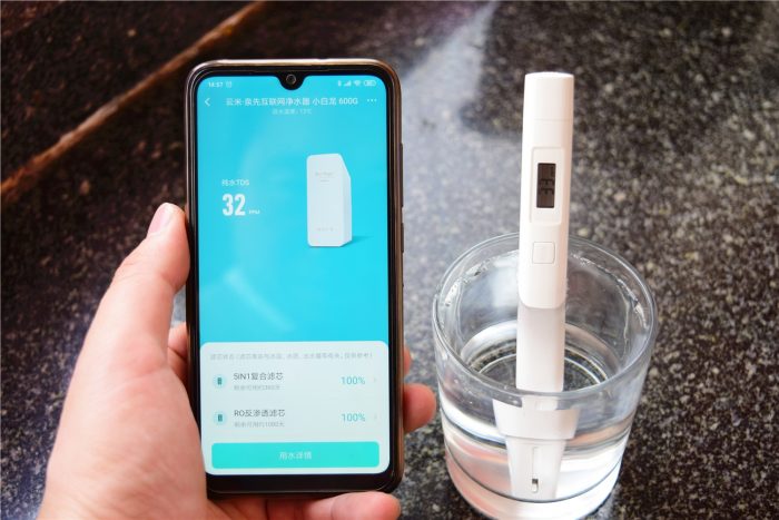 这里对云米·泉先小白龙控制界面显示的出水TDS值准确性进行过检测,通过TDS检测笔检测的数值对比后,可以看到两者基本相同,机器自带的TDS检测还是比较准确的。