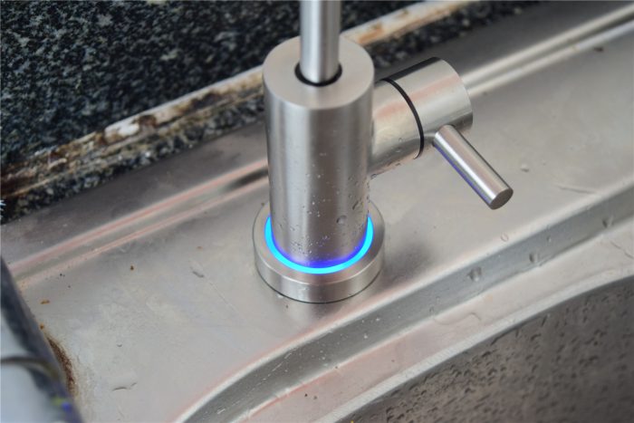 云米·泉先小白龙配备了专用水龙头,在靠近下方位置还加入了一圈LED指示灯,当新机或换芯复位后冲洗时,指示灯为蓝色闪烁,当滤芯寿命耗尽时,指示灯会显示橙色常亮,此时需要尽快购买新滤芯并且进行更换。