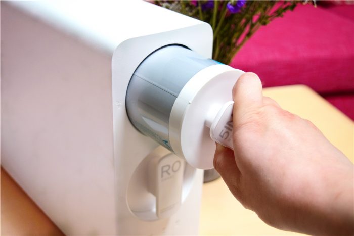 云米·泉先小白龙采用横抽式滤芯设计,搭配宽大的易握把手,更换滤芯更轻松。进行滤芯更换时,无需挪动机器,只需轻按滤芯,然后逆时针旋转90°至“解锁”标识处,就能够轻松抽出;安装滤芯时,轻按滤芯然后顺时针旋转90°至“锁闭”位置即可。
