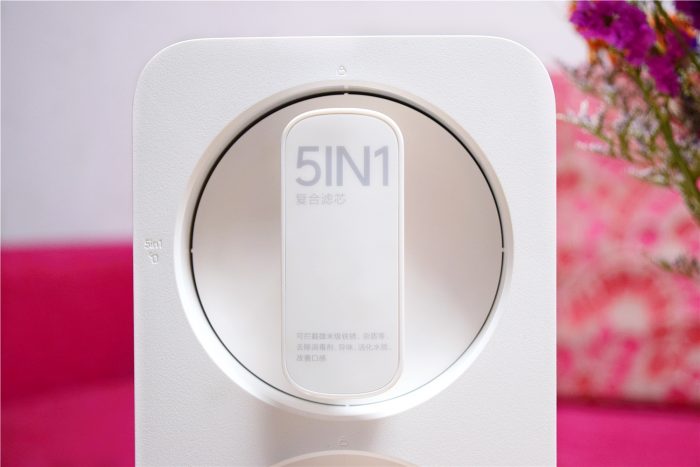 其中5in1复合滤芯由高密度折叠PP滤芯、前置炭棒滤芯、高效阻垢剂、后置炭棒滤芯和后置无纺布组成,能够有效滤除水中的铁锈、泥沙、纤维等肉眼可见物,还能去除异色、异味、余氯、三氯甲烷、四氯化碳等有机物。