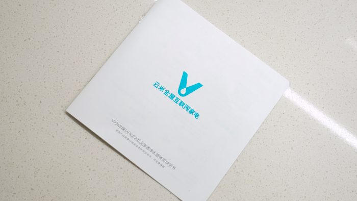 在机身底部是泉先与云米的LOGO标识,云米的LOGO依旧还是V字型图案,而泉先的LOGO则是一个小水滴中央有一个镂空的“泉”字样。