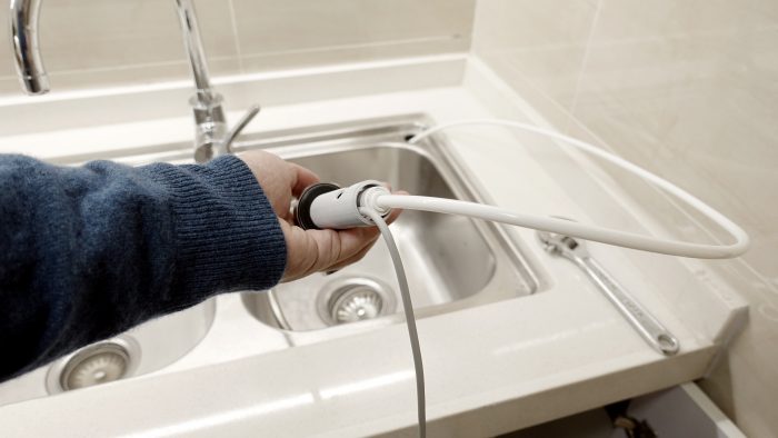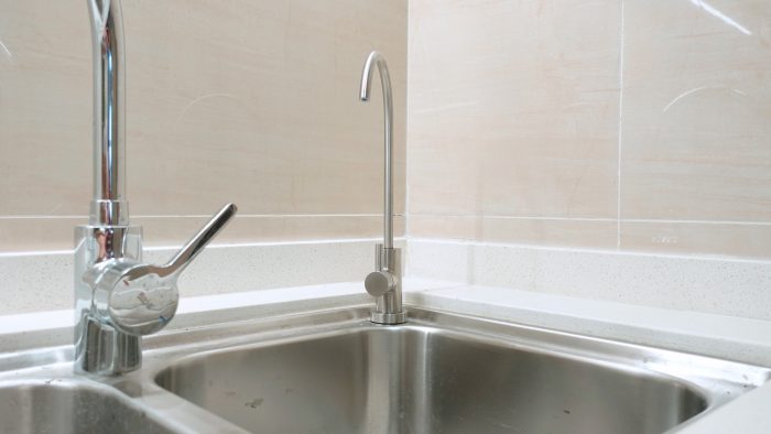 一般双水槽都会预留两个龙头安装孔的,其中一个便可用来安装净水器龙头,因为龙头的组成部件相对较少,而且预留孔位都是标准口,所以安装起来还是比较简单的。