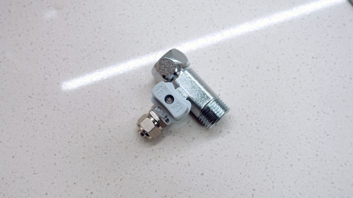 最后云米·泉先互联网智能净水器小白龙还赠送了一个三通阀,其不仅做了开关旋钮设计,其三通阀的一端还集成了自来水软管接口。