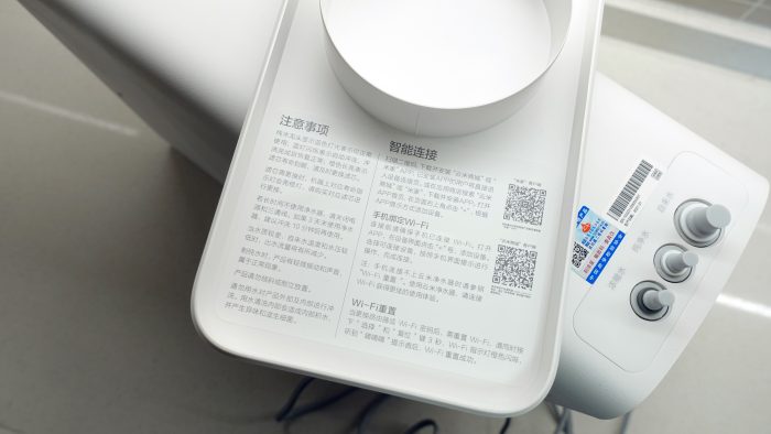 纸质使用说明书对于使用过净水器的人来说,应该没啥用途,一是因为联网配对是在前置面板背后已经有详细操作说明,二是因为饮水机的只有两个触摸按键,每个按键的功能都有文字标注。