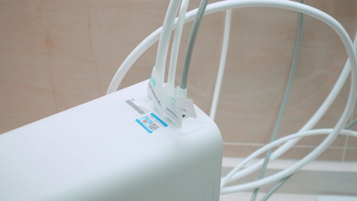 净水器的背面是一块不可拆卸的灰色面板,如果你足够仔细的话,还可以看到背后的水路图案,瞬间增添了不少好奇心,从图案也可以看出云米·泉先互联网智能净水器小白龙采用了一体集成水路,一体成型设计有效防止漏水。