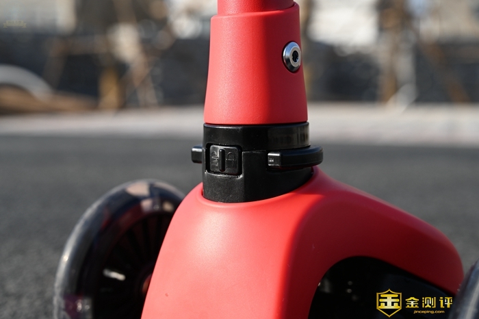 这款滑板车采用了一个折叠收纳的设计,所以外出携带也是很方便的,并且组装起来也不难,用起来很简单。另外它的车把部分也是采用了高度可调的设计,这样很容易照顾到不同年龄的小朋友,基本上10岁以下,身高90到140cm的小朋友都可以使用。