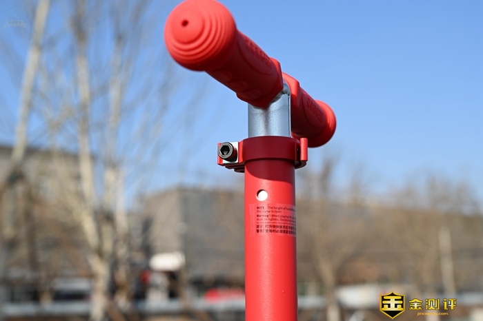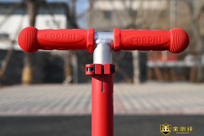 这款滑板车的车把部分做得比较结实,硅胶把手的防滑性也较好,小朋友在使用中可以轻松握牢,而且这种两端球形的设计也很招小朋友喜欢。