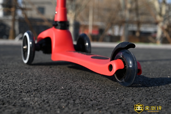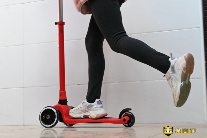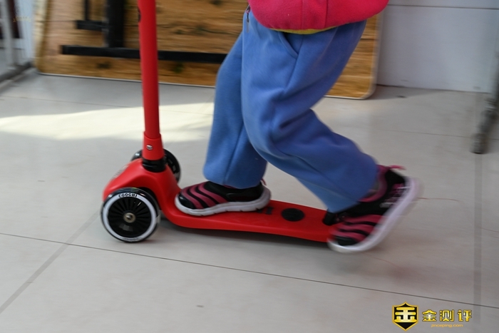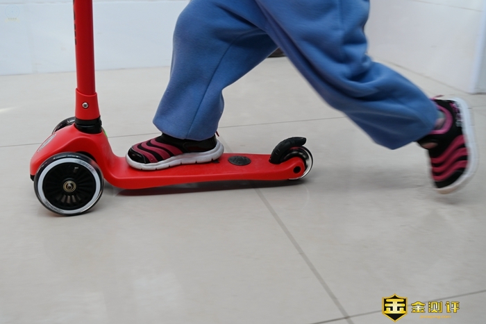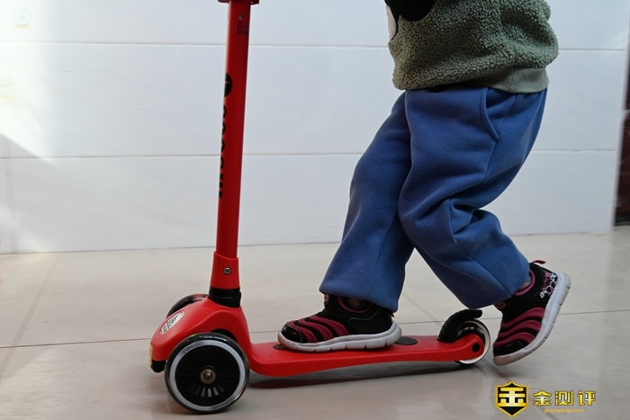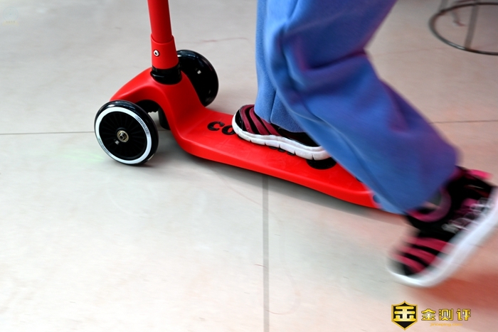 把这款滑板车交给小朋友玩耍的时候,车轮的彩灯还是很有吸引力的,特别是到了晚上,灯的效果就显得格外明显,很容易吸引到小朋友的注意力。