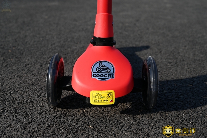 而且在酷骑V1发光滑板车的尾部车轮上,也有一个渐进式刹车的设计,可以方便的帮助小朋友减速,这种渐进减速的停车方式也比较安全,可以避免小朋友因为突然停车而因为惯性摔倒。