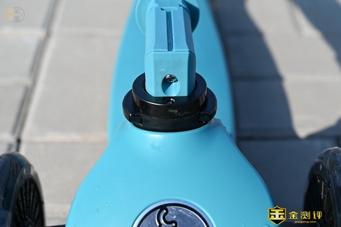 这款滑板车的车把高度可以大幅度的调节,调节方位从65到84.5厘米都可以,能够适合一两岁到十岁左右的小孩使用,所以很容易找到适合孩子的高度。日常使用当中,一个合适的车把高度,对于小朋友的操作和安全都有很大帮助,所以调好高度后,也最好确认一下车把的锁扣是否锁紧了,保证小朋友使用中的安全性。