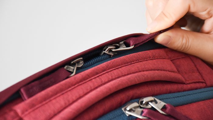 在最内侧还有一个隐藏式的储物空间,这里的拉链在正常状态下基本上看不到,并且背起来的时候与背部贴合最紧密,相对来说也比较安全。
