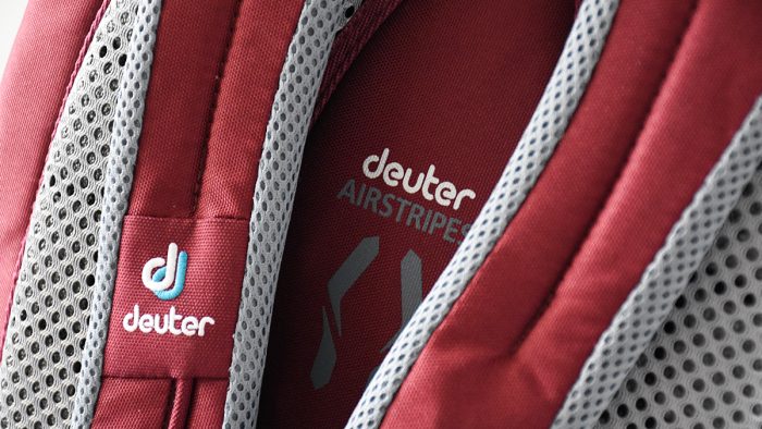 两条隆起部分的中间叫做AIRSTRIPES气柱,由3D太空棉构成,这部分尽可能的凹陷,避免与脊椎部分过分贴合,在背负的时候形成空气流通的渠道,引导热量从缝隙中自然排出,确保背包有比较好的透气性。