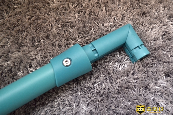 伸缩握把杆还有一个秘密就是可以90度弯折,这个是为了方便收纳搬运。一会演示给各位看下。