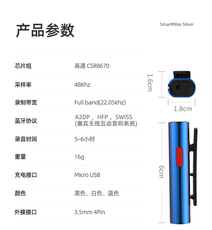 塞宾SmartMike Silver无线领夹式麦克风 5台