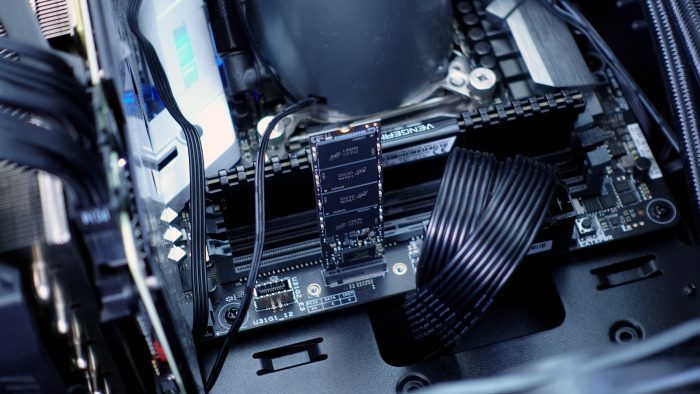 散热片与铝制散热马甲是分开的,所以在安装散热马甲的时候,需要先将散热片贴到固态上。