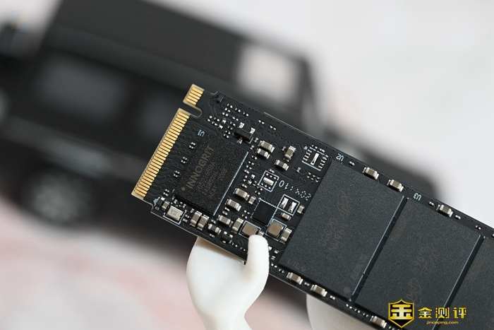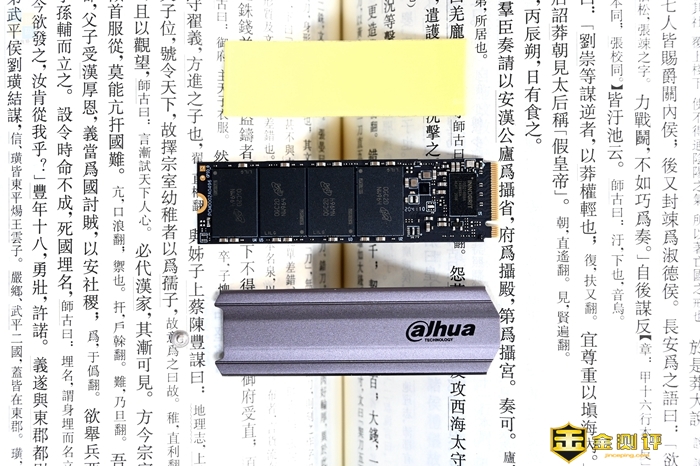 正式使用之前,我们先来看看大华C900 PLUS的具体用料如何。因为硬盘正面没有贴标签,所以我们可以直观的看到这款1TB规格的固态硬盘上面,主要的元件包括一块小巧的主控,以及四颗闪存颗粒。