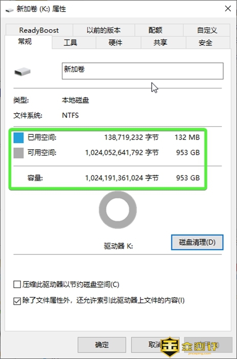 装机之后,我们通过软件来查看一下大华C900 PLUS的具体参数和性能表现,首先我们来看一下这款硬盘的可用空间,在Windows 10 20H2上将硬盘全盘分区之后,可以得到953GiB的存储空间,理论上1TB的容量的硬盘,应该是931GiB的容量,所以这款硬盘的存储空间实际加量了不少。