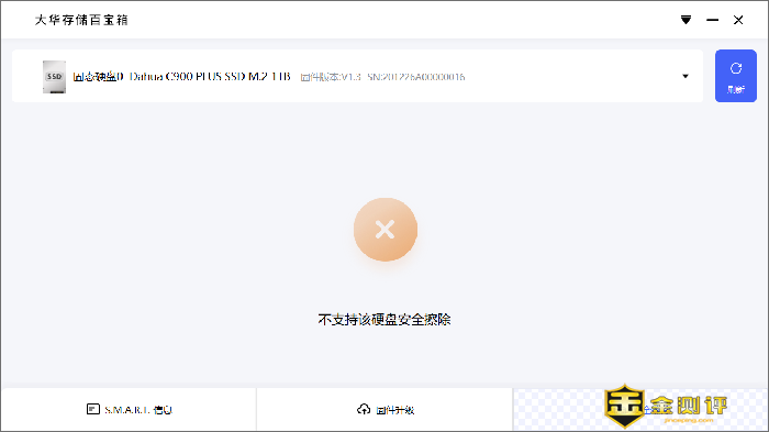 大华官网还提供了一款大华存储百宝箱的软件供用户使用。这是一款用于管理所在设备(例如 PC 等)上安装的大华品牌的 SATA 和 NVMe 固态硬盘的工具。百宝箱首页可以查看固态硬盘的健康状态、硬盘温度、进行防伪验证,查看固态硬盘分区的总容量、已用容量和剩余可用容量。软件下方还可以查看固态硬盘的S.M.A.R.T(Self-Monitoring Analysis and Reporting Technology)信息、升级固态硬盘固件和擦除固态硬盘数据等。