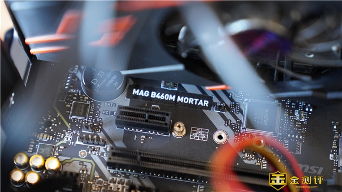 微星MAG B460M MORTAR迫击炮主板提供了2个M.2接口,第一个接口的位置位于CPU和风扇的下方,且这个接口配备了M.2冰霜铠甲,可以有效降低温度,保证M.2固态硬盘的性能,防止过热掉速。装系统时已经把我原来笔记本上的固态替换了下来,安装到了这个位置,为了避免麻烦,此次我们就把C900 PLUS安装到另外一个位置,作为存储盘使用。