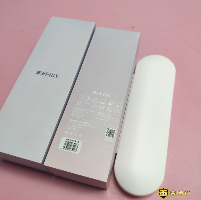 我收到的是粉色牙刷,牙刷装在一个长方形的盒子里,正面中间是扉乐Filix的激光字样,盒子盖是蓝色的,底是粉色的,看上去清新简洁。盒子两侧写明了这款牙刷的特点:磁悬浮马达、核定震频技术、杜邦护龈刷毛、高磨圆率刷毛、IPX7级防水、续航100天、2分钟智能定时、30秒换区提醒。盒子底部是简洁的牙刷安装、使用方法,以及产品名称、电池容量、额定功率等信息,在这里我又看到了“深圳市梦趣生活科技有限公司”的字样,原来是我们的老朋友南卡公司的产品呀!南卡的产品一向给人以“真材实料、贴心好用”的使用感受,所以对这款产品我非常有信心了!