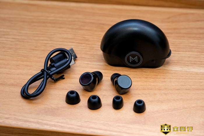 耳机的配件有额外的两对硅胶耳套,以适应不同的人的耳朵。另有一条Type-C的USB充电线。采用Type-C的接口充电的话,可以大大的增加线的通用性。防止出门忘了带充电线找不到充电的困扰。